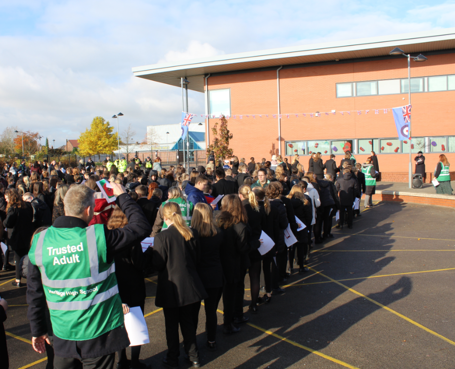 The Headteacher and all the staff at Heritage High School are immensely proud of how our students conducted themselves during the remembrance service today as the school united in silence to honour the brave soldiers who made the ultimate sacrifice. All students and staff stood together to show their respects.