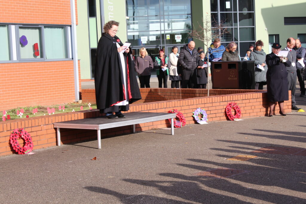 We would like to thank Reverend Bryony Taylor who lead the service, Allison Wain who played the Last Post and Reveille, and the police community support officers who came to join the service and show their respects.